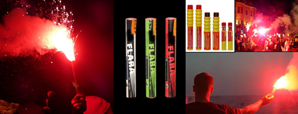 Flares can burn at up to 1,600 °C; pyrotechnics & fireworks can be even hotter, at up to 2,000 °C which is retained for a significant duration after the initial effect. There is also the added danger of an unexpected projectile. The throwing of pyrotechnics from within a crowd can also create dangerous and distressing crowd disturbance.