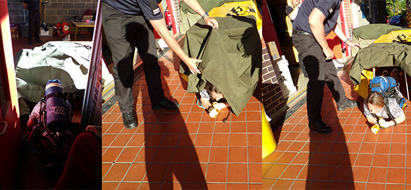 The aim was to navigate my way under a set of tables covered in tarpaulin while wear a breathing apparatus cylinder of compressed air.