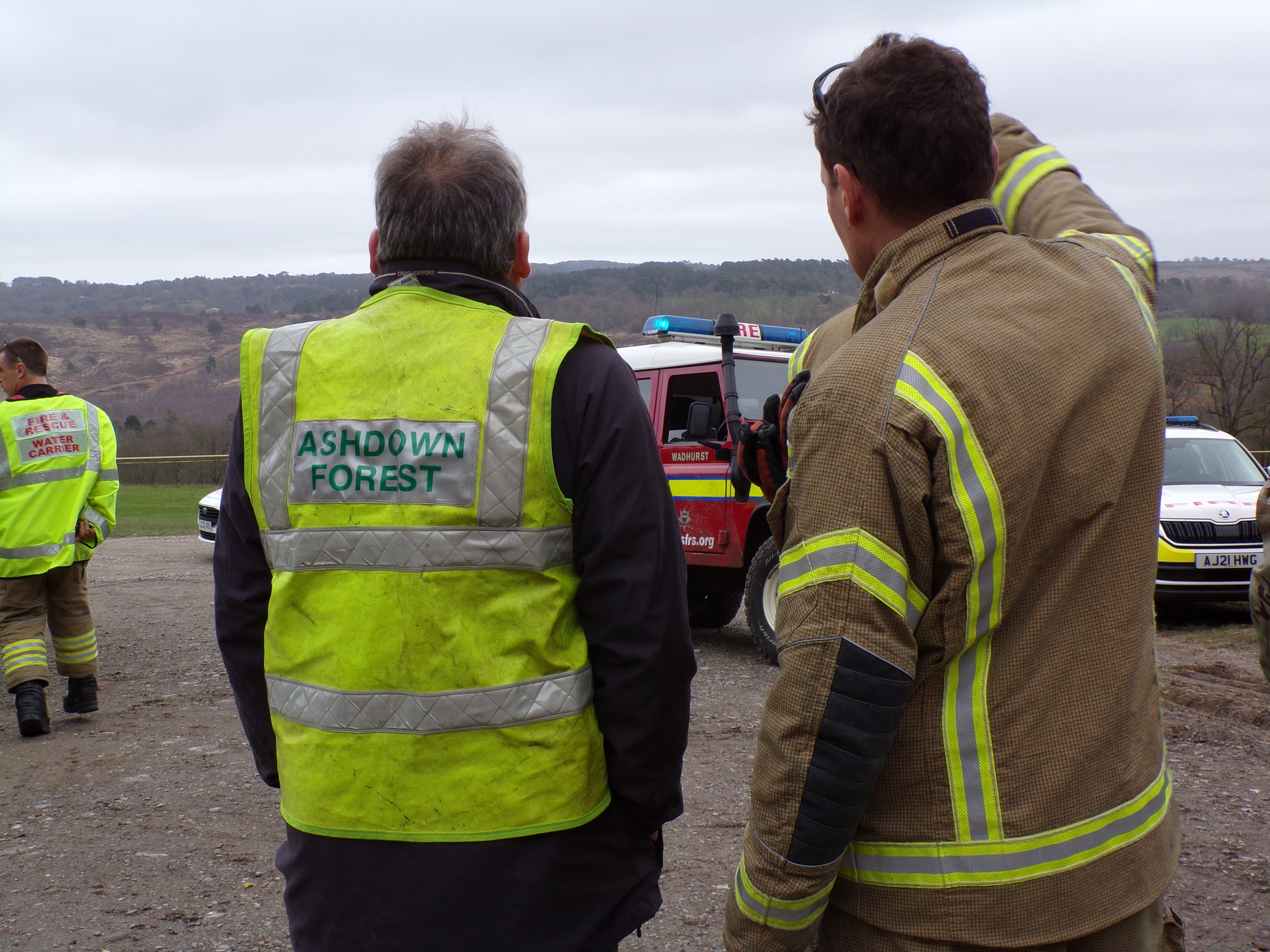 Around 40 firefighters from across the fours services responded to the mock scenario working together with our Joint Fire Control, a multi-service incident command team and local land managers including the Ashdown Forest Rangers. Fire engines and specialist appliances were also utilised including off road vehicles, drone teams and a water carrier.